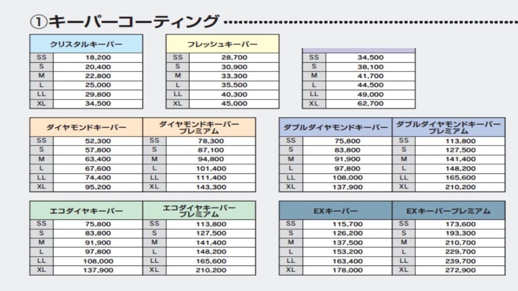 キーパー施工料金は、改定されることがあります。最新価格は、お気軽にお問い合わせください。
