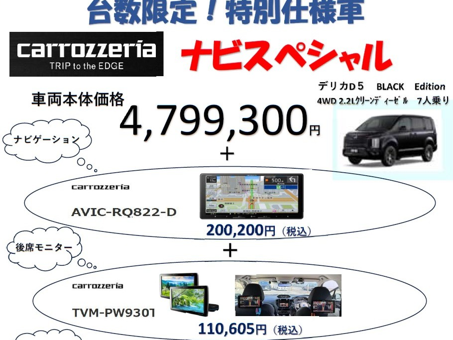 大好評!Carrozzeria(カロッツェリア)製品をご提供します! デリカD5 墨田三菱オリジナル 特別仕様車 Carrozzeriaナビスペシャル! セット標準価格 5,150,805円 [税込]…