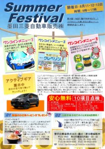 暑い日々が続きますが皆様どのようにお過ごしでしょうか? 墨田三菱では8月11.12.13日に夏イベントを開催します!(*^▽^*) 特別特価のワンコインメニューや無料安心点検! D:5のアクティブギアの展示など様々な催し […]