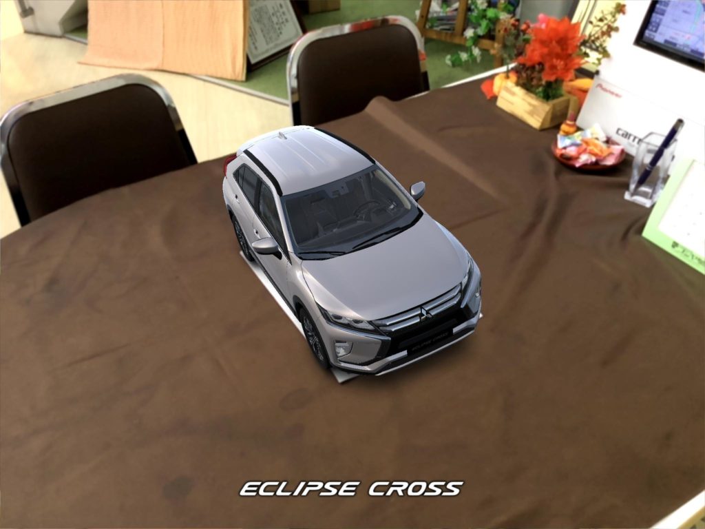 このシートをi padの専用アプリで見ると、実寸大のエクリプスクロスが目の前にある様に映し出されます。