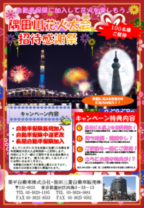 毎年恒例の大人気イベントが今年もはじまります!!!! 「自動車保険新規加入で隅田川花火大会にご招待」します!!!!(^O^)/ 7月の最終土曜日に毎年開催されている人気の花火大会ですが、場所取りや混雑がたいへんですよね・ […]