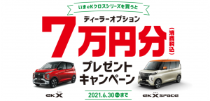eKクロス ディーラーオプション7万円(税込み)プレゼント 6月30日まで