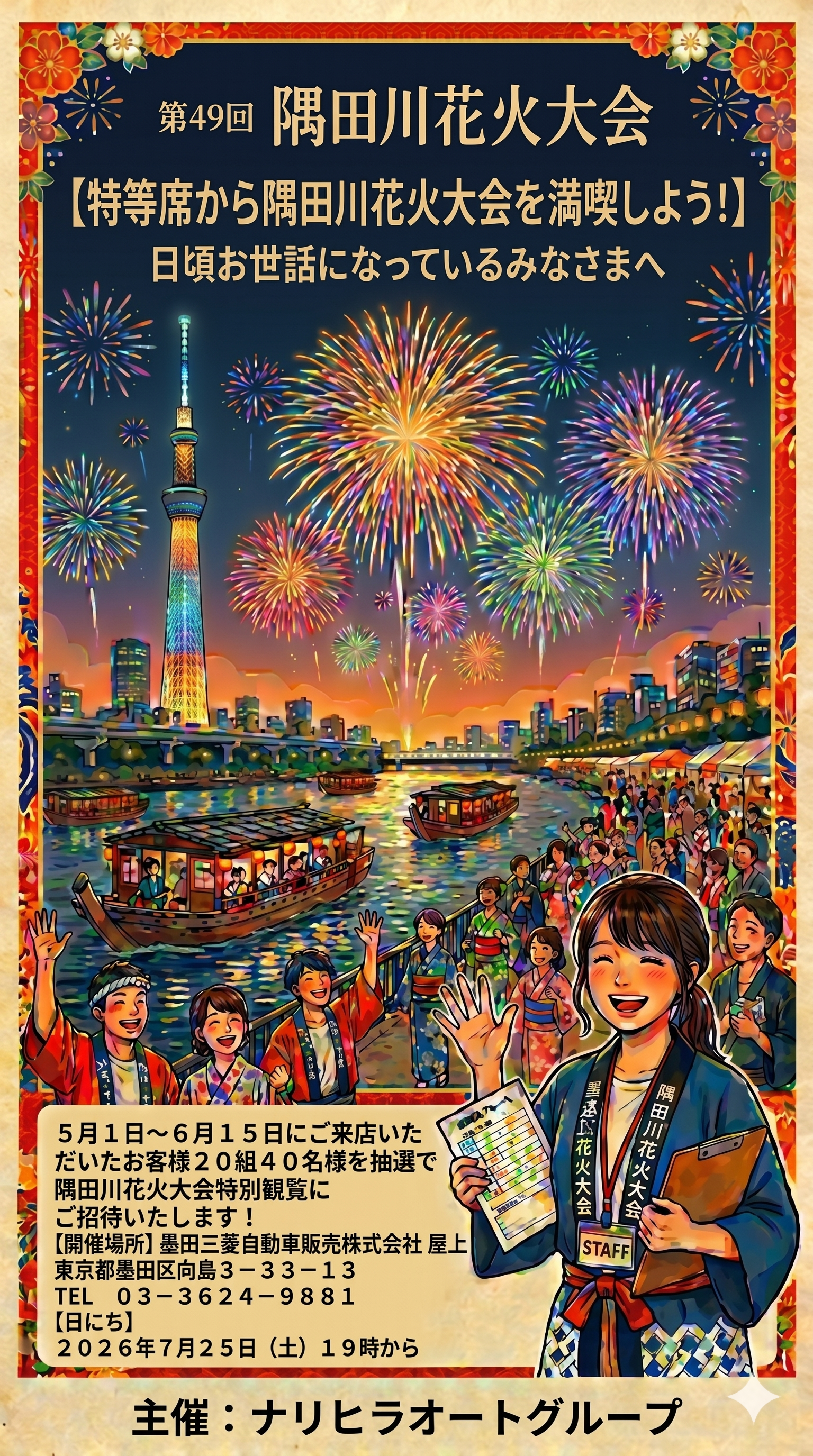毎年大好評の隅田川花火大会特別観覧の応募が今年も始まります!